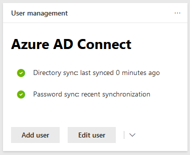 You can quickly check synchronization status by looking at the User Management card on the Home page of the Microsoft 365 Admin Center.
